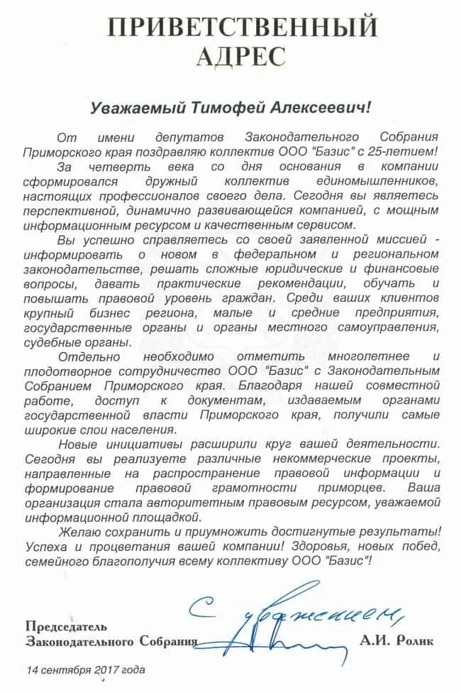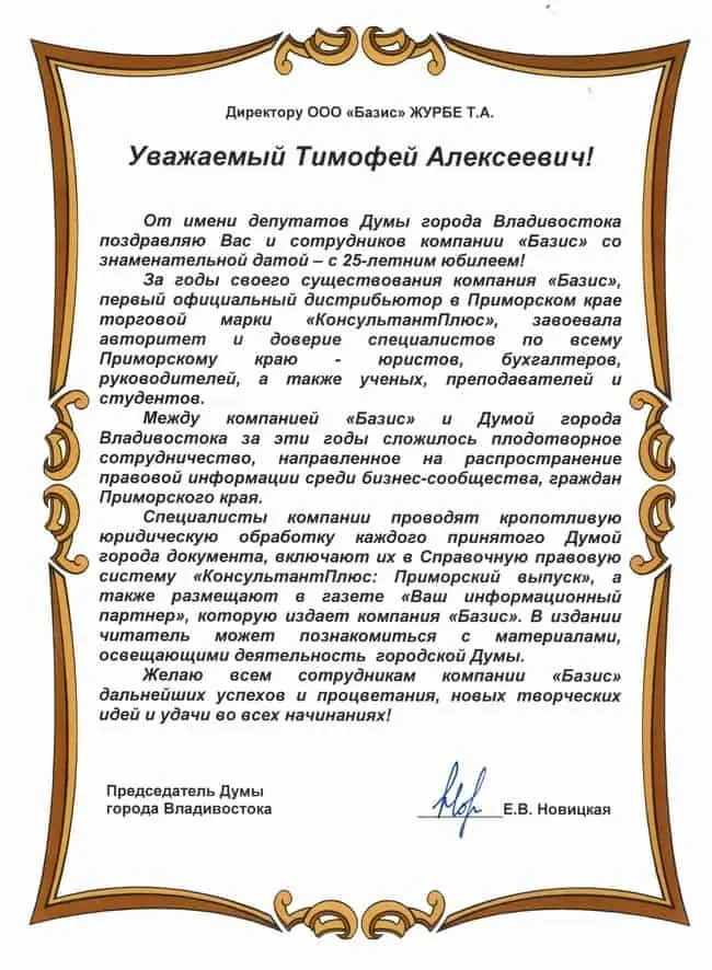 В апреле 2025 года исполнилось тридцать три года с того момента, когда в России была создана и начала развиваться справочно-правовая система Консультант Плюс. В августе этого же года начала свою деятельность и компания «Базис». Приятно осознавать, что мы стояли у истоков создания в России современных технологий, открывших доступ к правовой информации всем, кому она необходима. За это время в истории нашей работы было много успешных проектов и достижений. Помимо доступа к удобному инструменту, позволяющему нашим клиентам эффективно работать с правовой информацией, наша компания реализовала много самостоятельных сервисных проектов. За эти годы неотъемлемой частью нашего сервиса стали медиапроекты «Видеосеминары/Видеоконференции», газета «Ваш информационный партнер», семинары и вебинары, онлайн-интервью. В рамках этих проектов специалисты государственных и муниципальных структур, независимые эксперты освещают наиболее актуальные темы, связанные с применением законодательства. Мы благодарим всех наших клиентов за то, что все эти годы вы были и остаетесь с нами. Именно вы вдохновляете нас на развитие перспективных направлений и поиск новых идей. Мы, в свою очередь, будем стремиться к тому, чтобы наше сотрудничество стало еще более удобным и взаимовыгодным. Впереди у нашей компании новые планы и проекты. Но главное – это наша миссия, которая выполнима и вот уже почти 33 года неизменна, – надежная правовая поддержка каждого клиента!